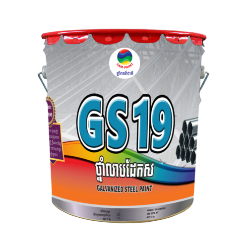 - ព័ត៌មានទូទៅពីផលិតផលៈ ជីអេស ១៩ (GS19) ជាប្រភេទថ្នាំប្រេងសម្រាប់លាបលើដែក (ស) ផ្សំពីកាវ Thermoplastic Acrylic និង សារធាតុបន្ថែម ដែលសុទ្ធតែមានលក្ខណៈពិសេសអាចធន់នឹងអាកាសធាតុខាងក្រៅគ្រប់រដូវកាល។
